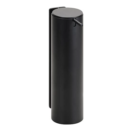 • Distributeur de savon élégant noir, parfait pour les salles de bains modernes.