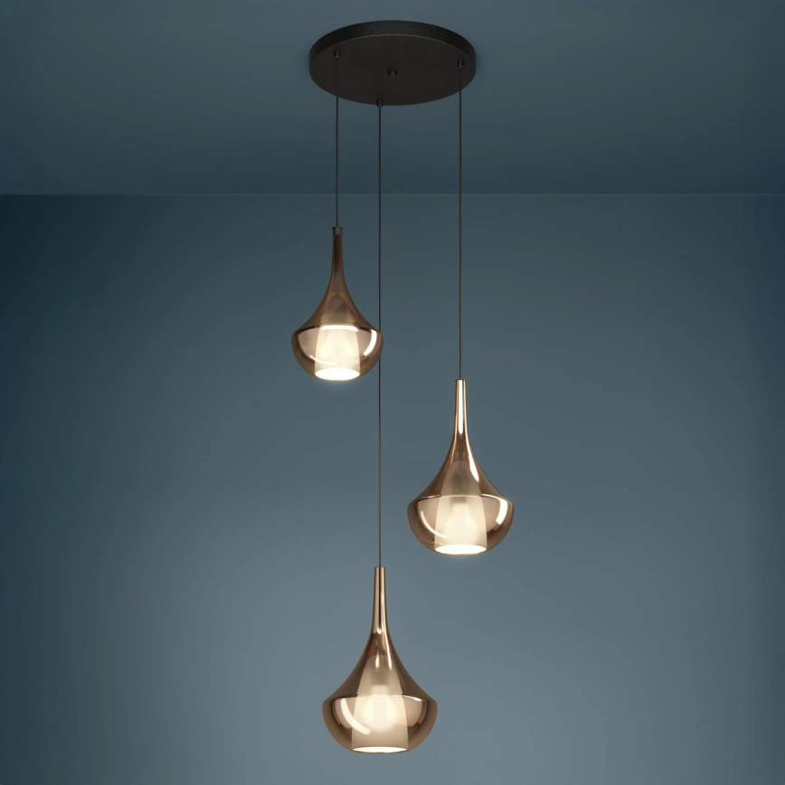 Eglo - Lustre suspendu sur câble 3xE27/28W/230V, finition cuivre