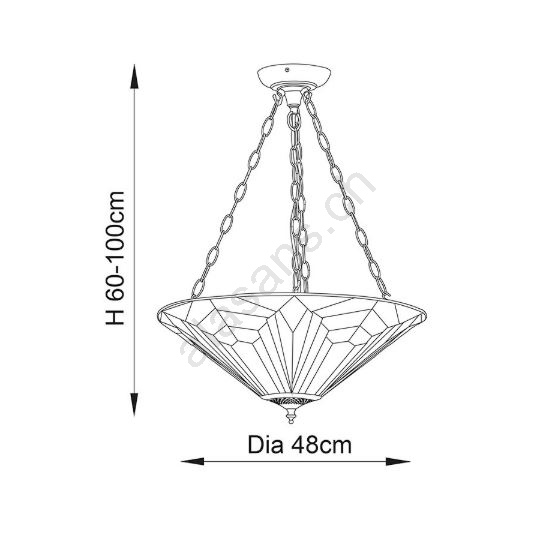 Endon 63936 - Lustre Tiffany ASTORIA suspendu par chaîne, 3xE27/60W/230V, Ø 48 cm