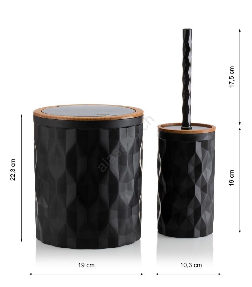• Le set comprend : un distributeur de savon, un porte-savon, un gobelet pour brosse à dents et dentifrice, une poubelle et une brosse WC.