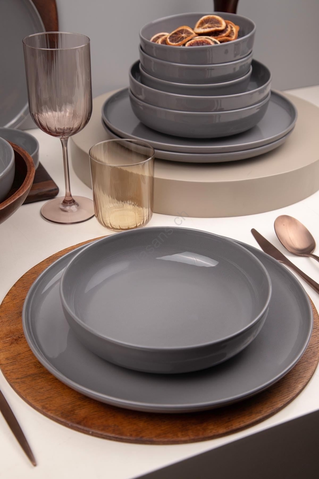 Ensemble de vaisselle 12 pièces gris en porcelaine