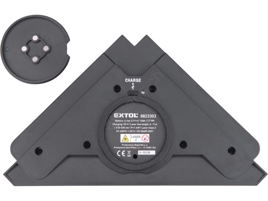 Extol Premium - Équerre laser 90° avec module d'aspiration électrique 5V/1000 mAh