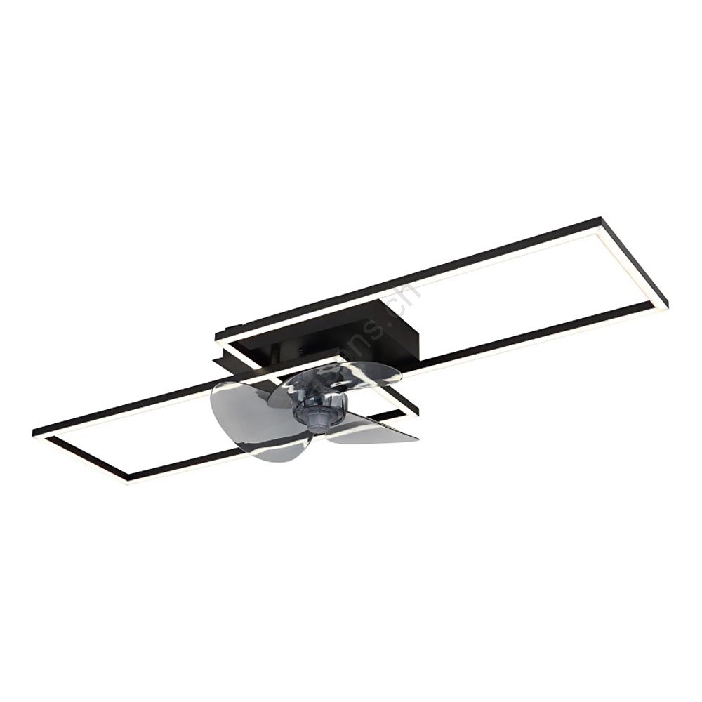 • Ventilateur de plafond au design soigné, finition noir mat et détails opalescents.
