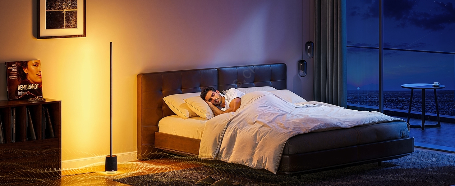 • Lampe sur pied minimaliste avec haut-parleur BT, offrant une expérience visuelle parfaite et un son de qualité exceptionnelle.
