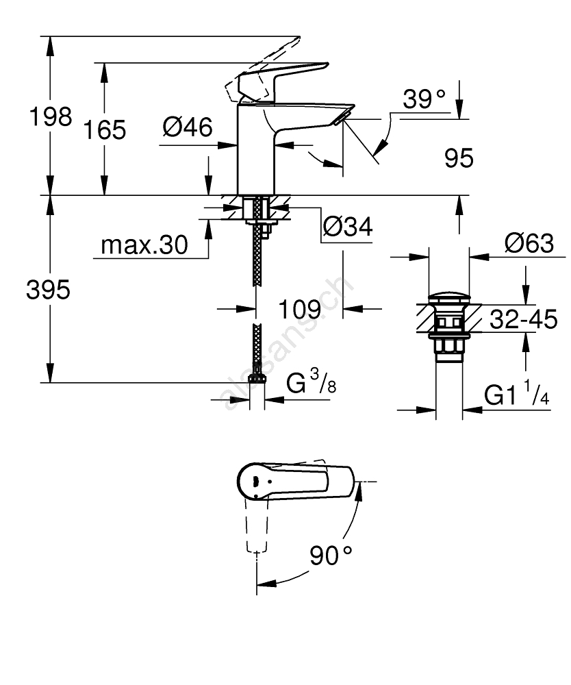 • Aérateur GROHE Water Saving débit 5,7 l/min pour une consommation d'eau réduite.