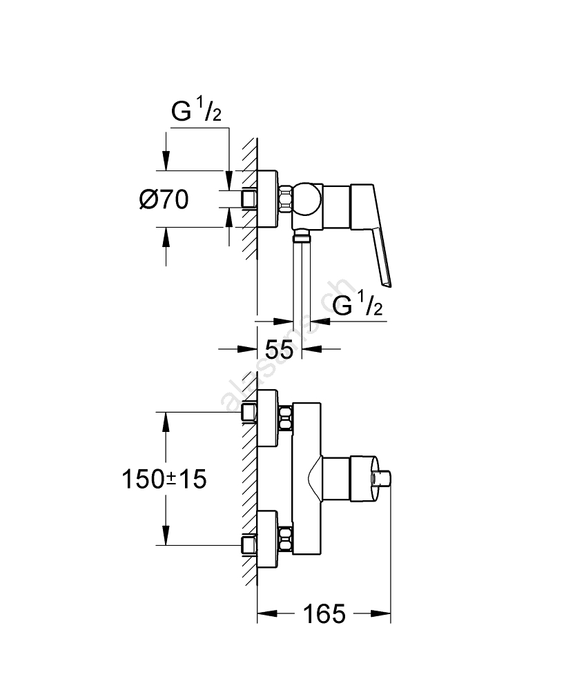 • Mitigeur de douche mural à levier, facile à installer.