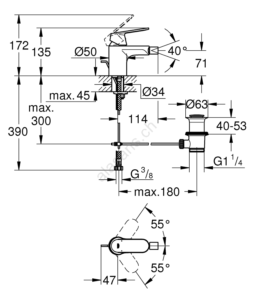 • Finition GROHE Long-Life assurant un brillant durable et une résistance aux rayures.