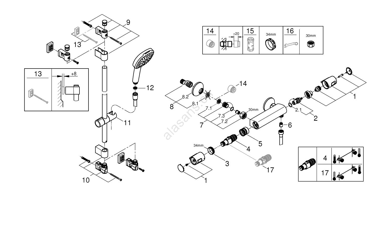 Colonnes de douche, Colonnes de douche, Grohe, Marques, Robinets de douche, Robinets thermostatiques, Robinetterie, Robinetterie de salle de bains, Salle de bains