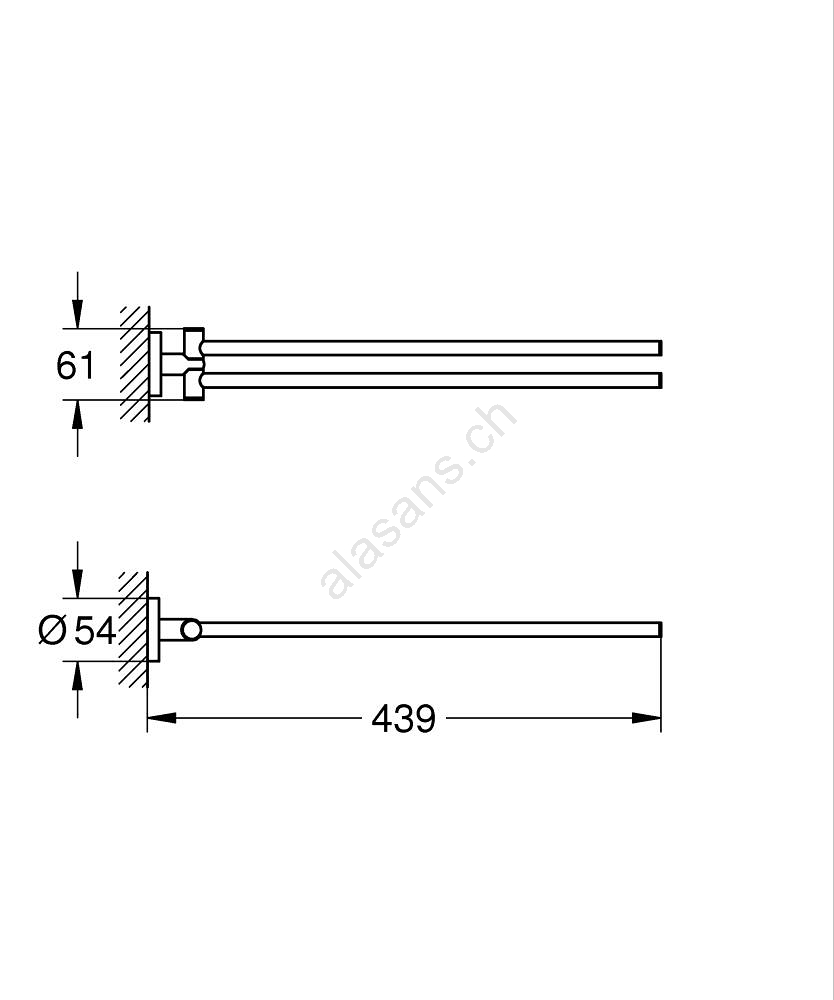 • Une longueur de 439 mm offre suffisamment d'espace pour suspendre vos serviettes.