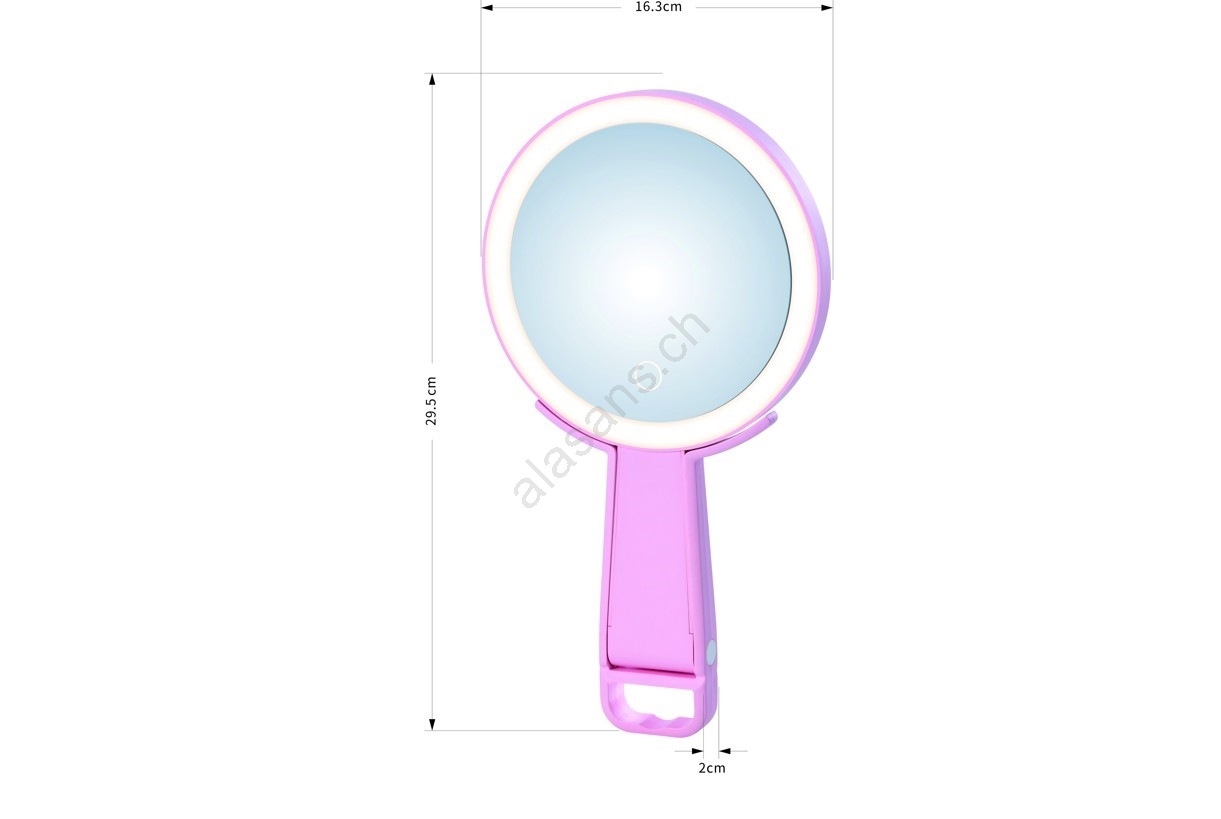 • Le support est pivotant et maintient fermement le miroir à n'importe quel angle des deux côtés, offrant une flexibilité maximale pour le maquillage et les soins précis de la peau.