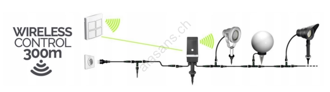 • Avec l'interrupteur, vous pouvez contrôler l'éclairage jusqu'à 300 mètres de distance.