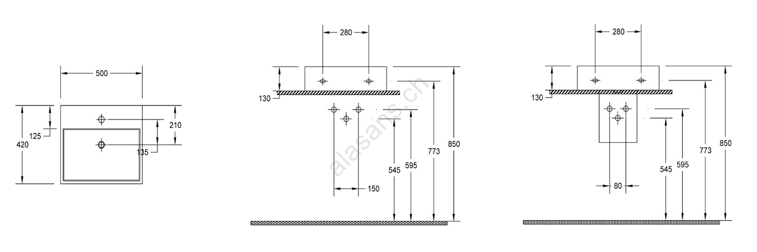 • Le lavabo est dépourvu de dosseret émaillé.