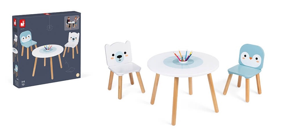 • Cet ensemble coloré composé d'une table et de 2 chaises au motif d'animaux polaires est l'accessoire idéal pour la chambre d'enfant.