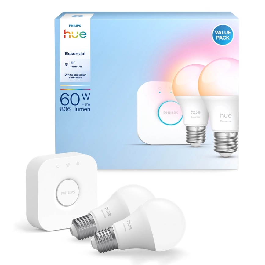 Kit de démarrage Philips Hue White And Color Ambiance Essential 2xE27/8W/230V 2200-6500K + passerelle de connexion