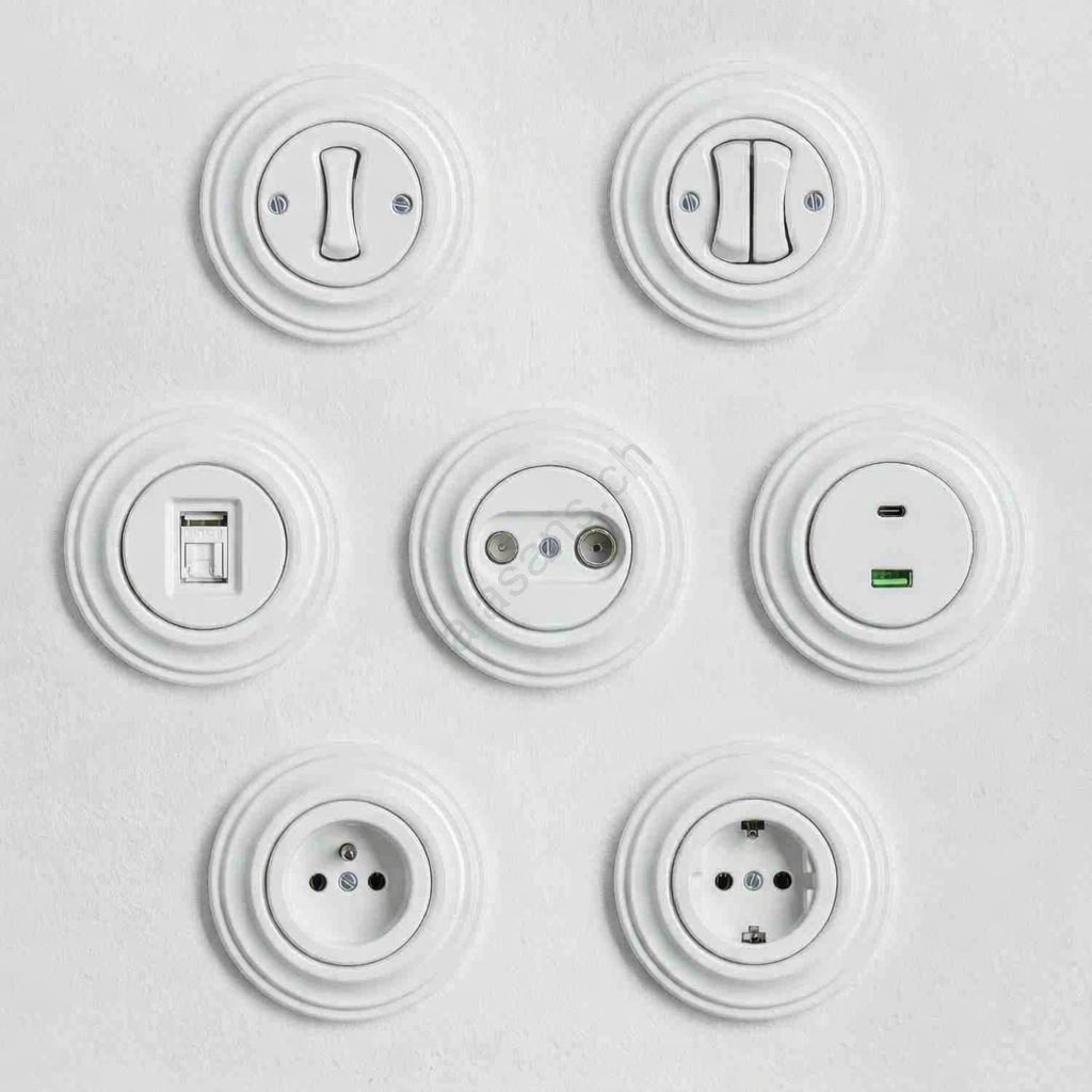• Kliklap - Bouton double rétro avec cadre en céramique blanche