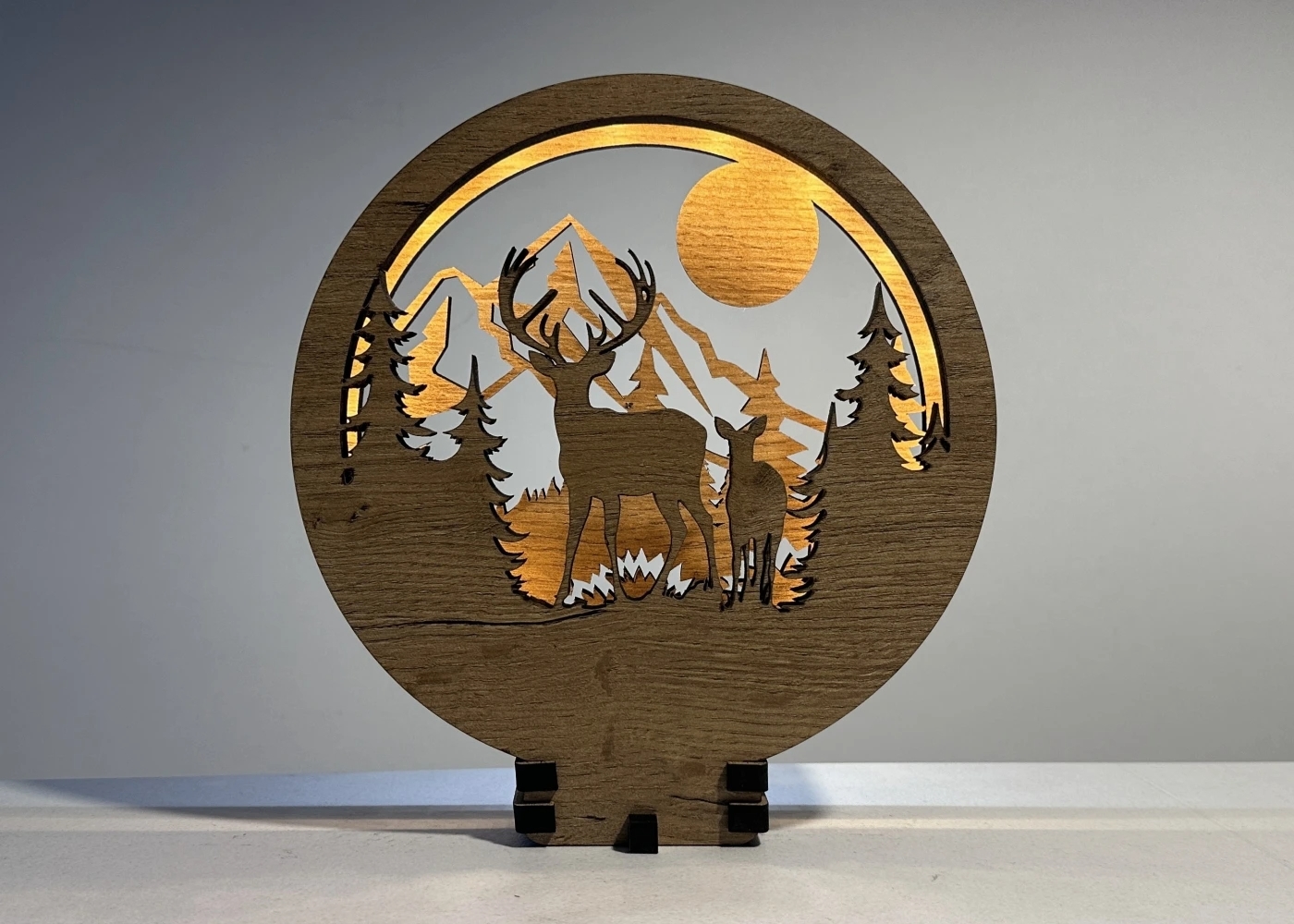 Li-Go 23592/DUB2 - Lampe décorative de table LED dimmable LED/12W/230V 20x22 cm chêne/Cerf et biche