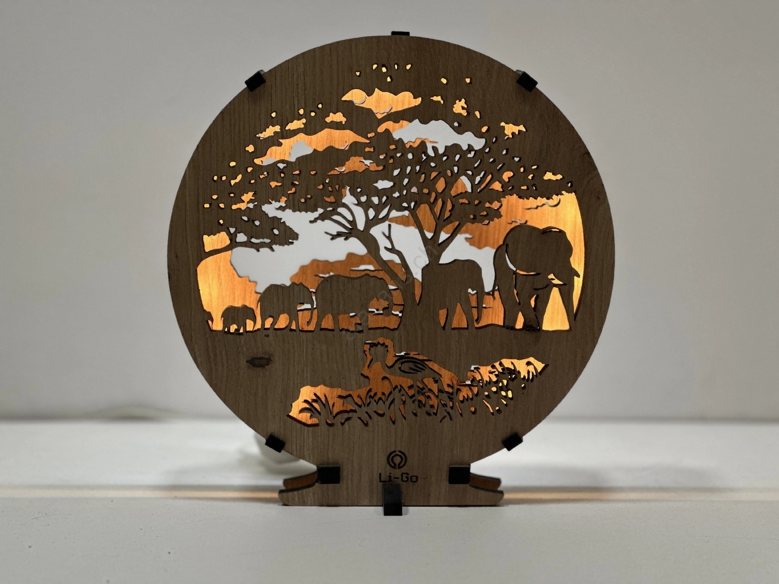 Li-Go 23610/DUB2 - Lampe décorative de table LED à intensité réglable LED/12W/230V 20x22 cm chêne/éléphants