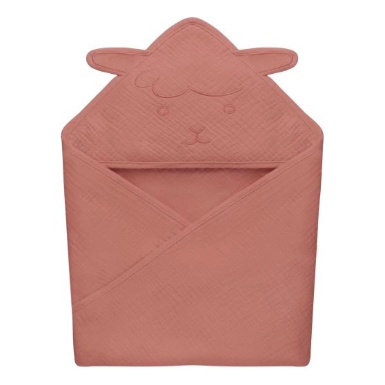 • Serviette à capuche en mousseline de coton douce offrant un confort maximal après chaque bain.