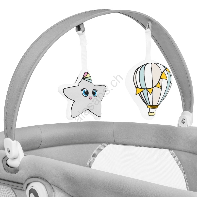 • Détection automatique du mouvement du bébé, 12 mélodies, arche de jeu amovible avec 3 jouets.