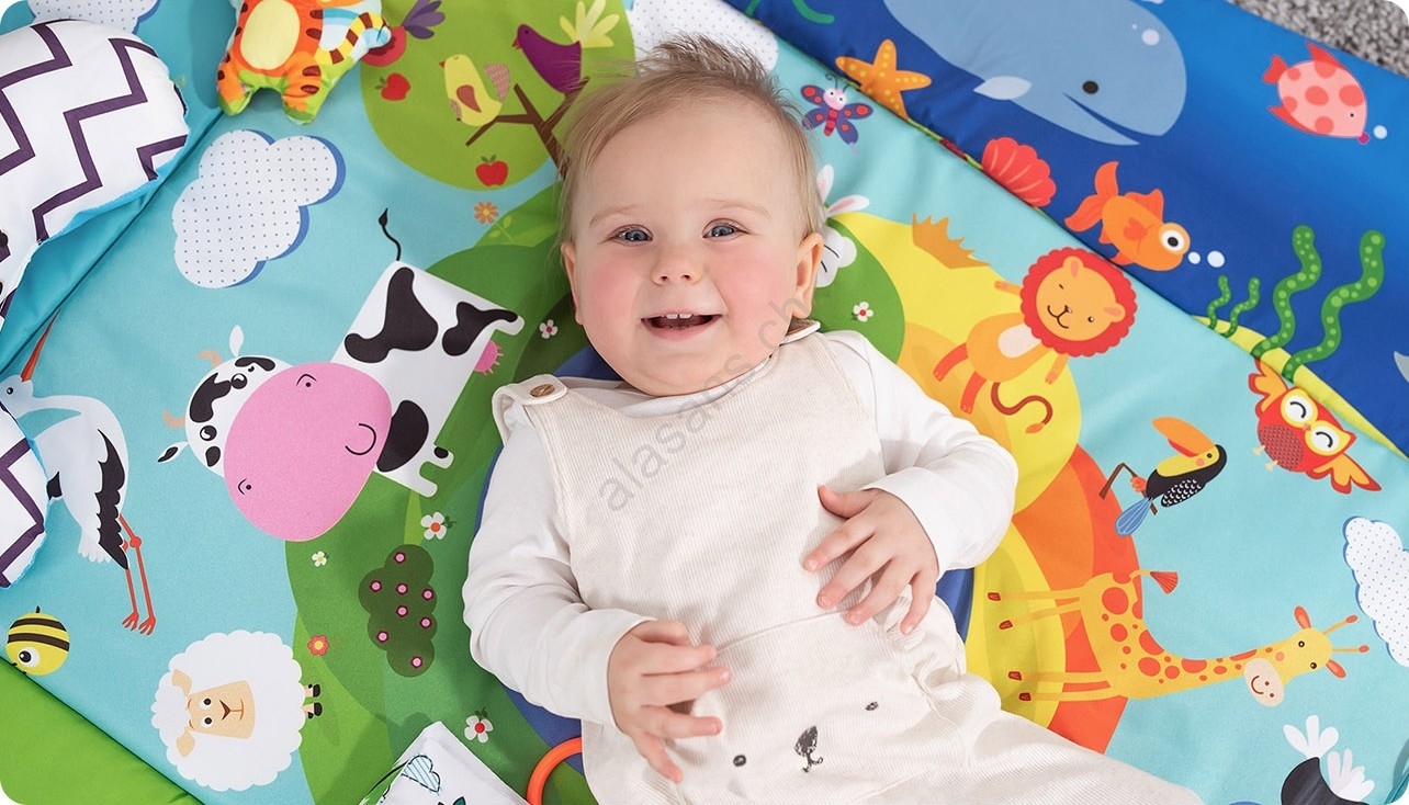 • Possibilité de relever les bords du tapis pour créer un espace de jeu douillet pour l'enfant.