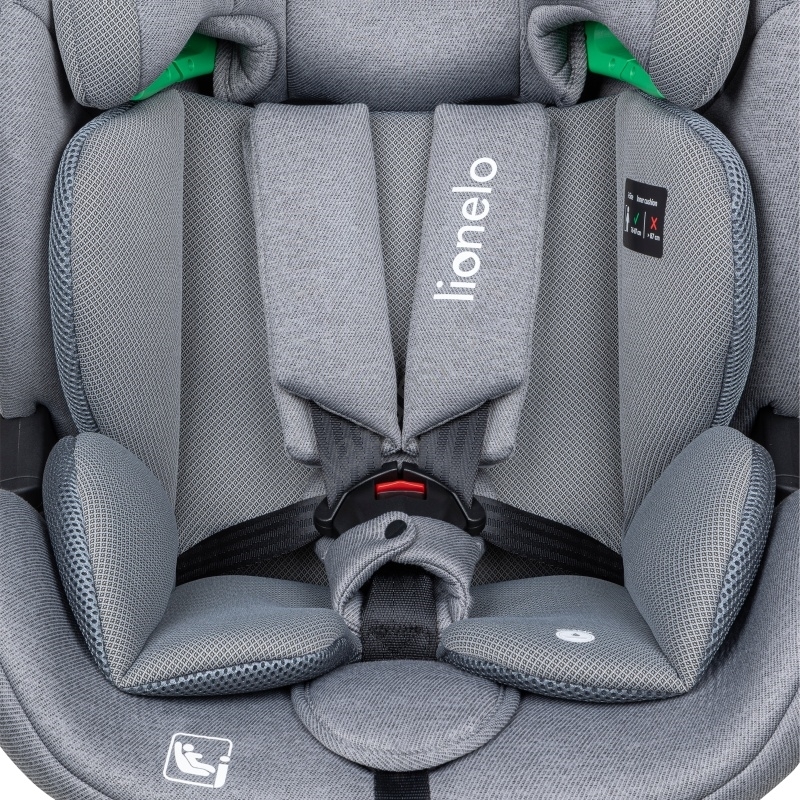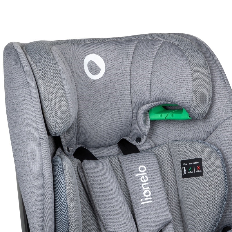 • Le Lionelo Lavender i-Size est un siège auto pour enfants 76–150 cm, installé face à la route.