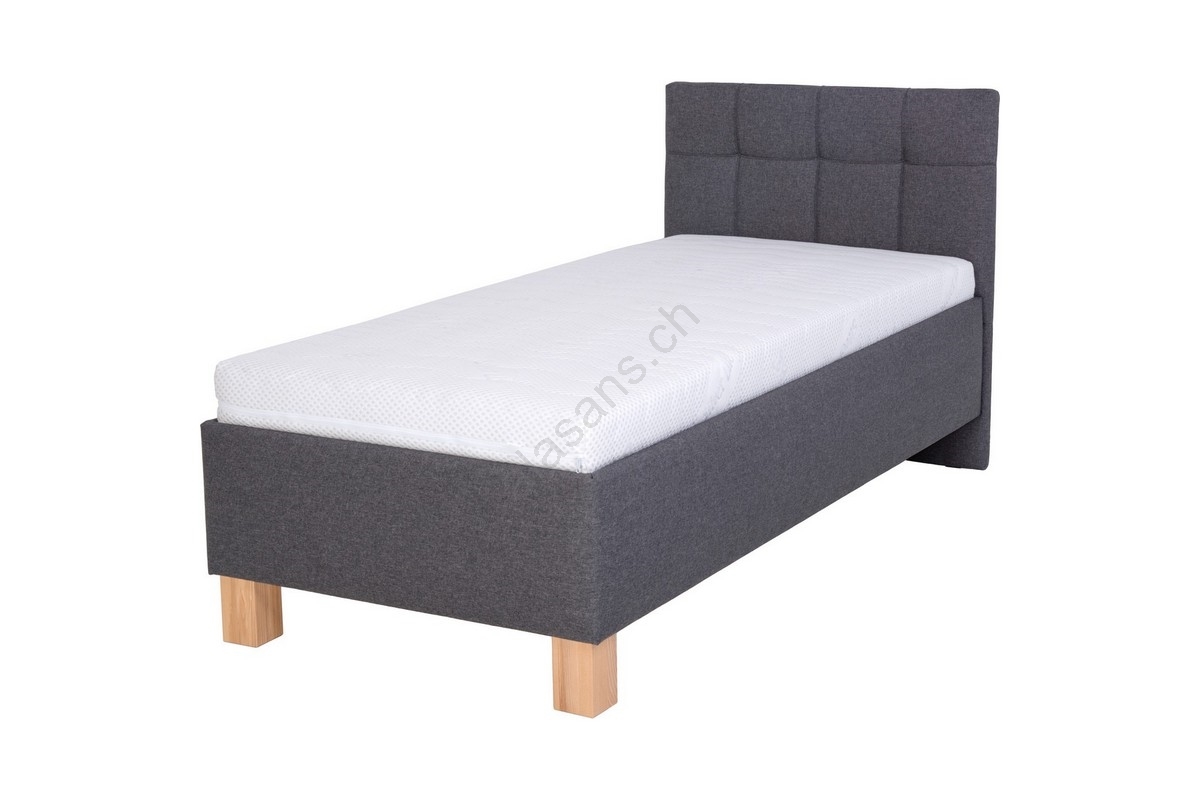 Lit coffre tapissé MARIA ONE 90x200 cm, sans matelas, gris