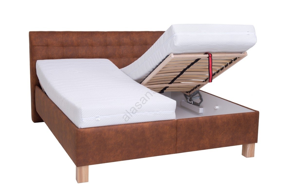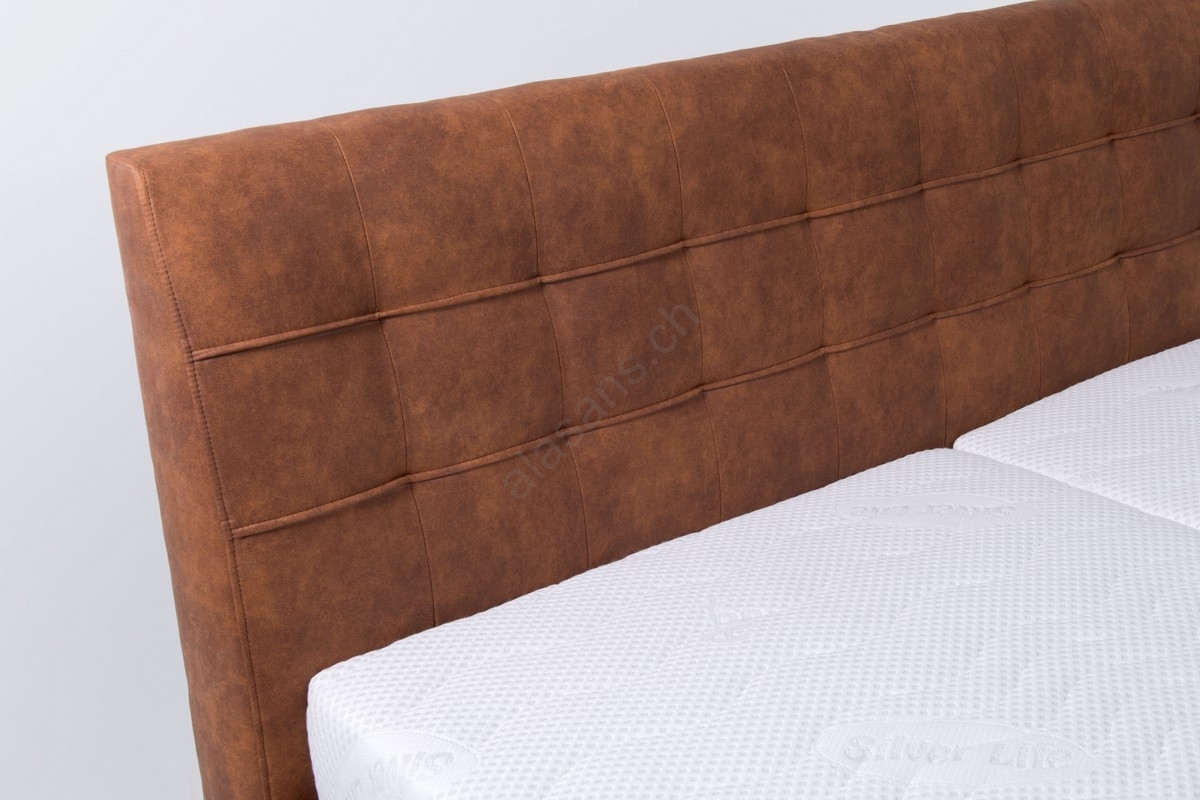 Lit tapissé avec coffre de rangement, sans matelas VIOLET 160x200 cm coloris cognac