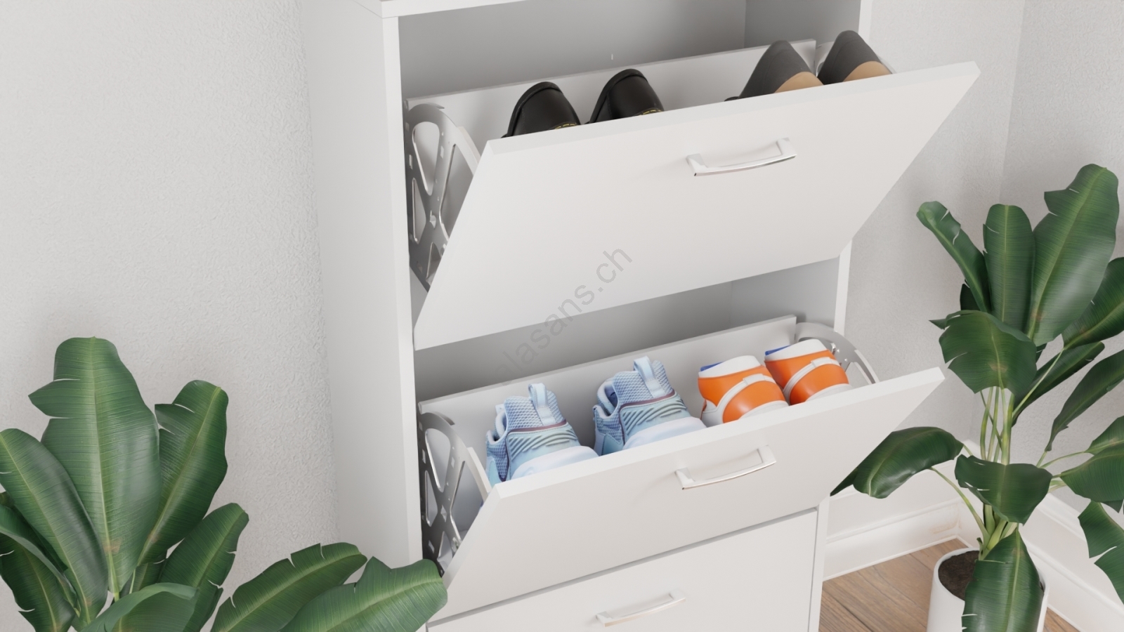 • Il maximise l'espace vertical tout en conservant un accès facile aux chaussures; le dessus peut également servir de surface pour déposer vos clés ou un vase de fleurs.