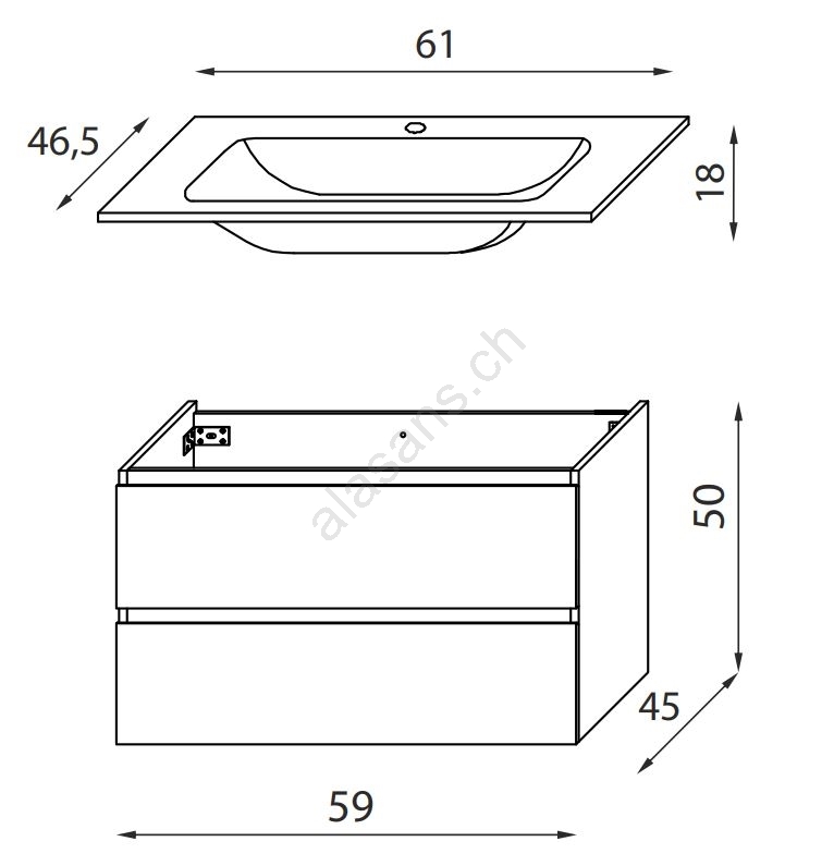• Ce meuble est livré avec un lavabo en céramique.