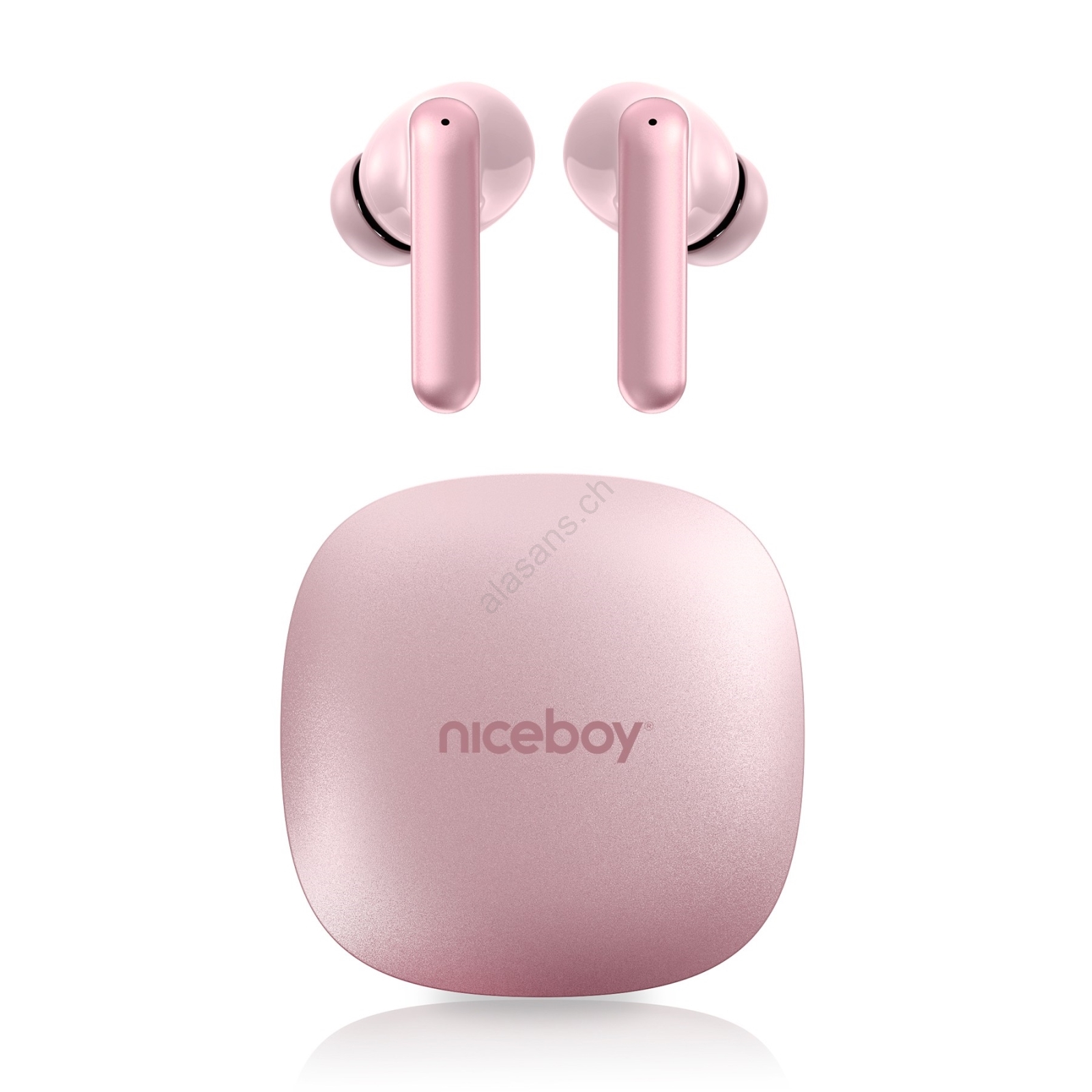 Niceboy Pins 4 PRO - Écouteurs sans fil avec ANC, boîtier 380 mAh + 2 × 35 mAh, IP54, rose