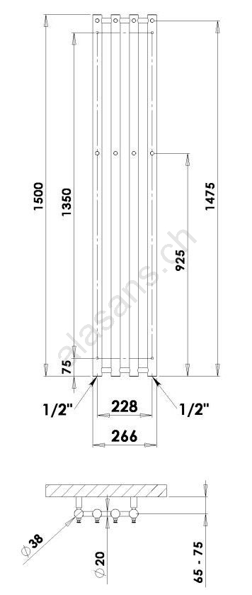 P.M.H. R2B - Radiateur sèche-serviettes en échelle ROSENDAL 350 W 150 cm noir