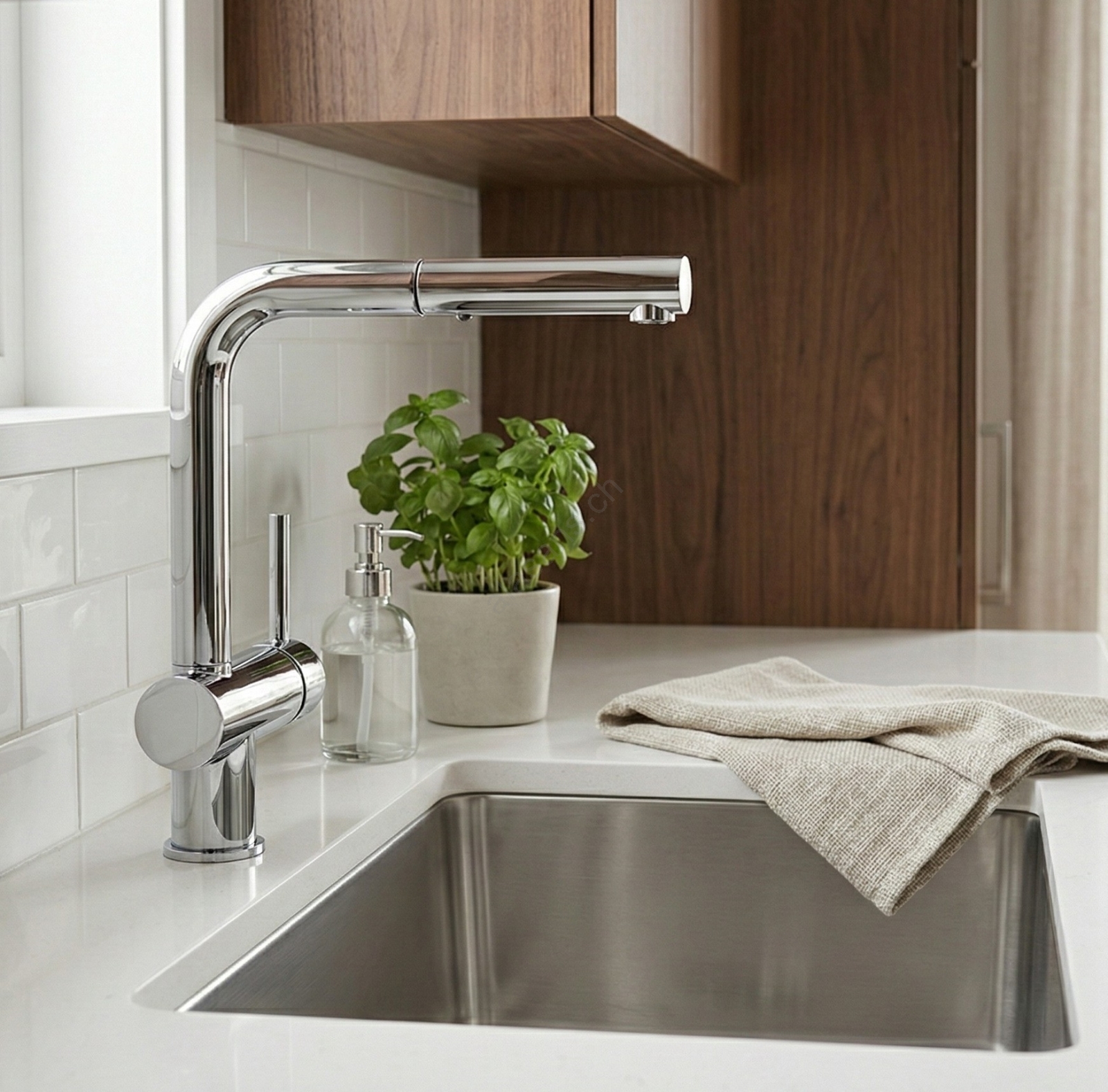 • Bec pivotant pour faciliter le travail au niveau de l'évier.