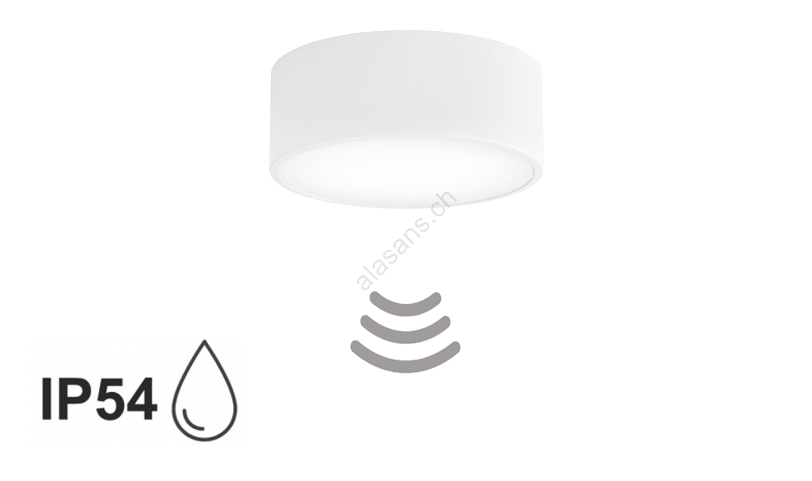 Plafonnier pour salle de bains CLEO avec détecteur, 1 x E27 (max. 24 W), 230 V, Ø 20 cm, IP54, blanc