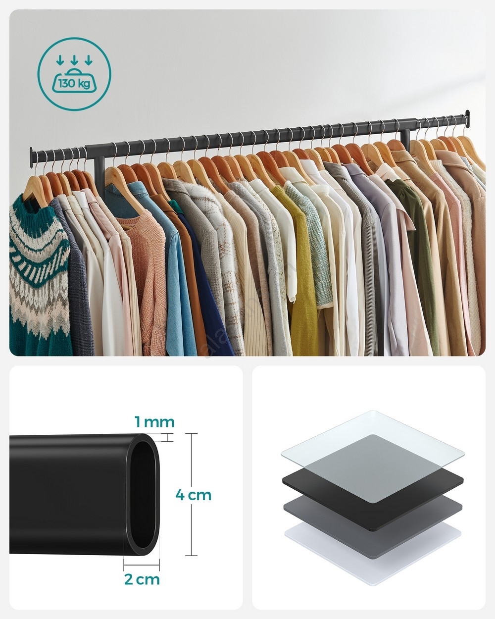 • La tringle supérieure peut supporter jusqu'à 130 kg (charge répartie uniformément) sans balancement ni basculement, la tringle télescopique offre un espace supplémentaire pour vos vêtements, chapeaux, sacs, etc.