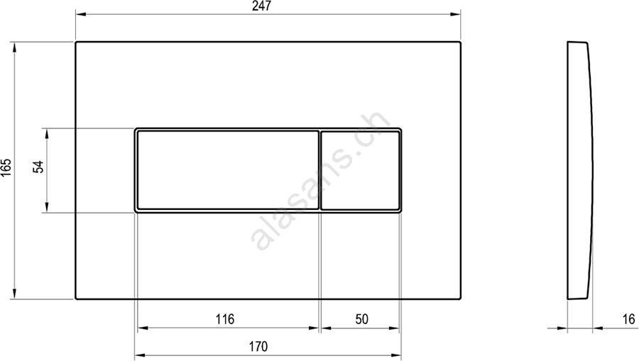 Ravak X01456 - Bouton de chasse d'eau UNI 24,7 x 16,5 cm, chrome mat