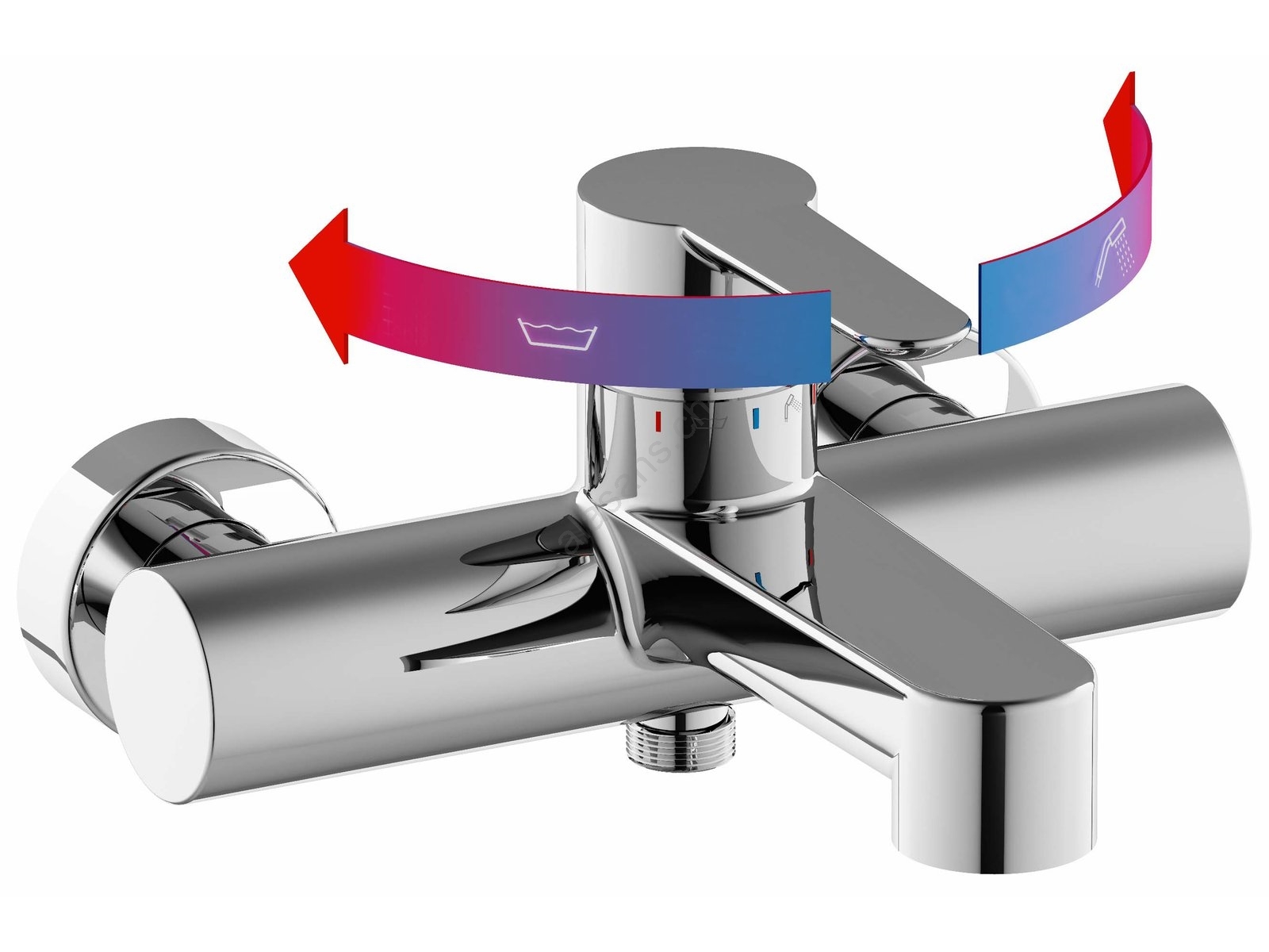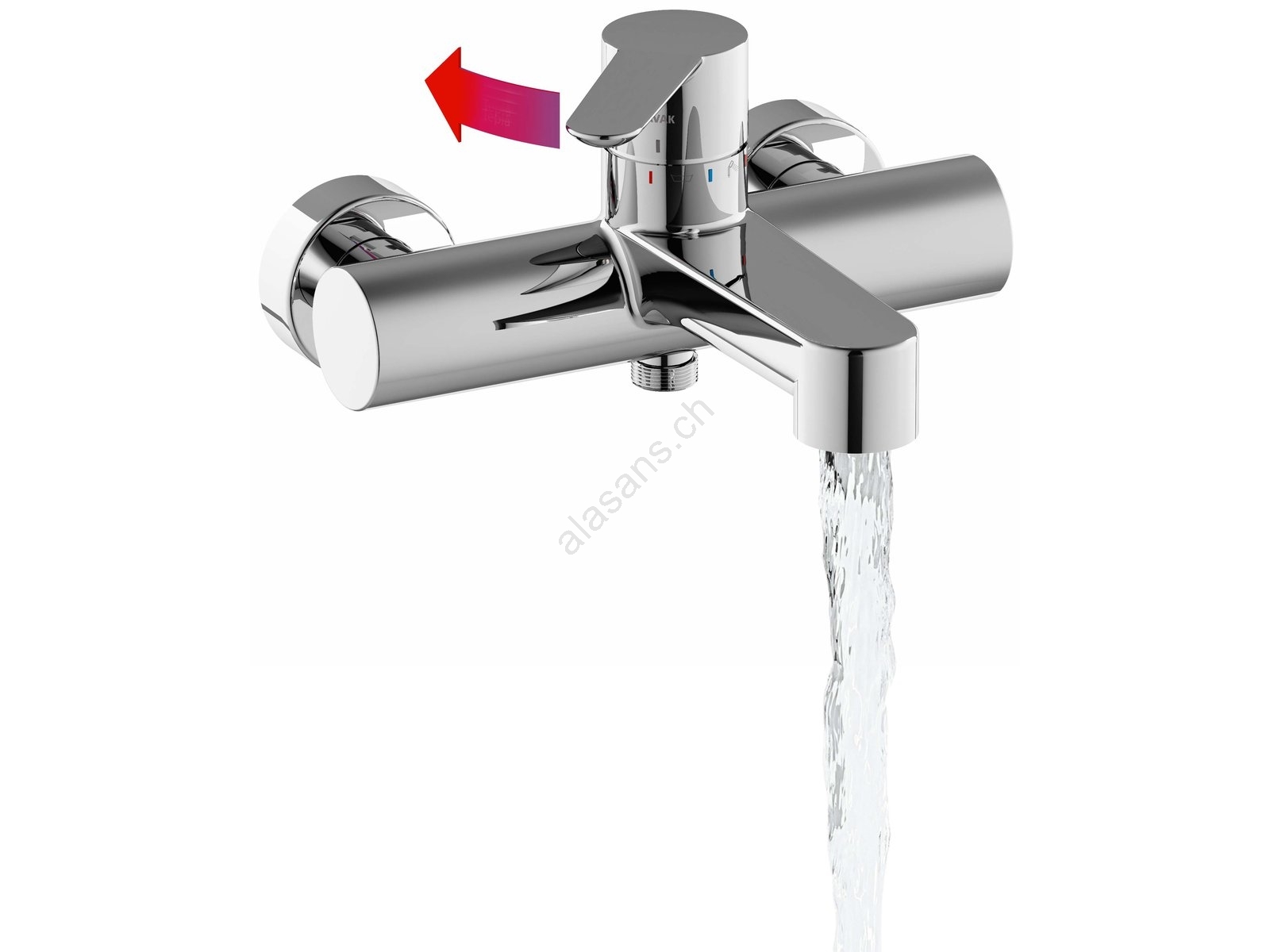 • En déplaçant la poignée vers la droite (douche) ou vers la gauche (baignoire), on règle uniquement la température de l'eau ; le débit reste stable.