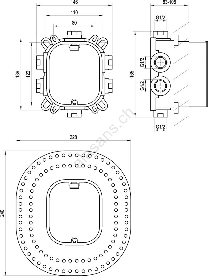 • Le R-box est un système d'installation universel pour mitigeurs encastrés à levier pour baignoire et douche, conçu pour être intégré dans la paroi.