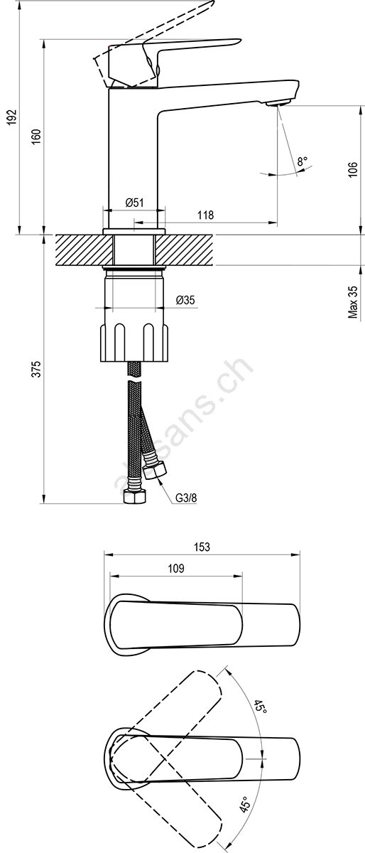 • La hauteur de 160 mm est idéale pour les lavabos courants et les flexibles de raccordement de 450 mm (G3/8) facilitent l'installation.