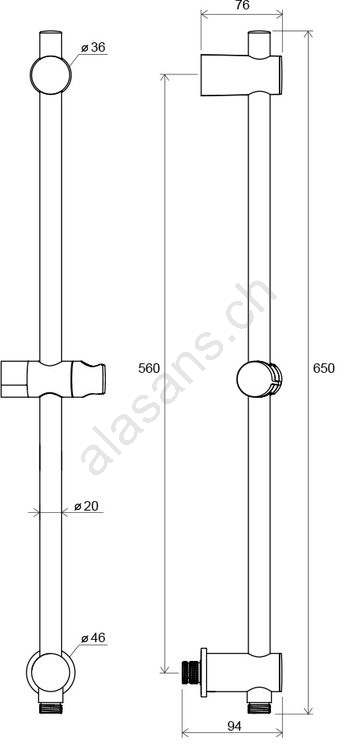 • Sortie d'eau encastrée intégrée directement dans la barre avec filetage extérieur G1/2".