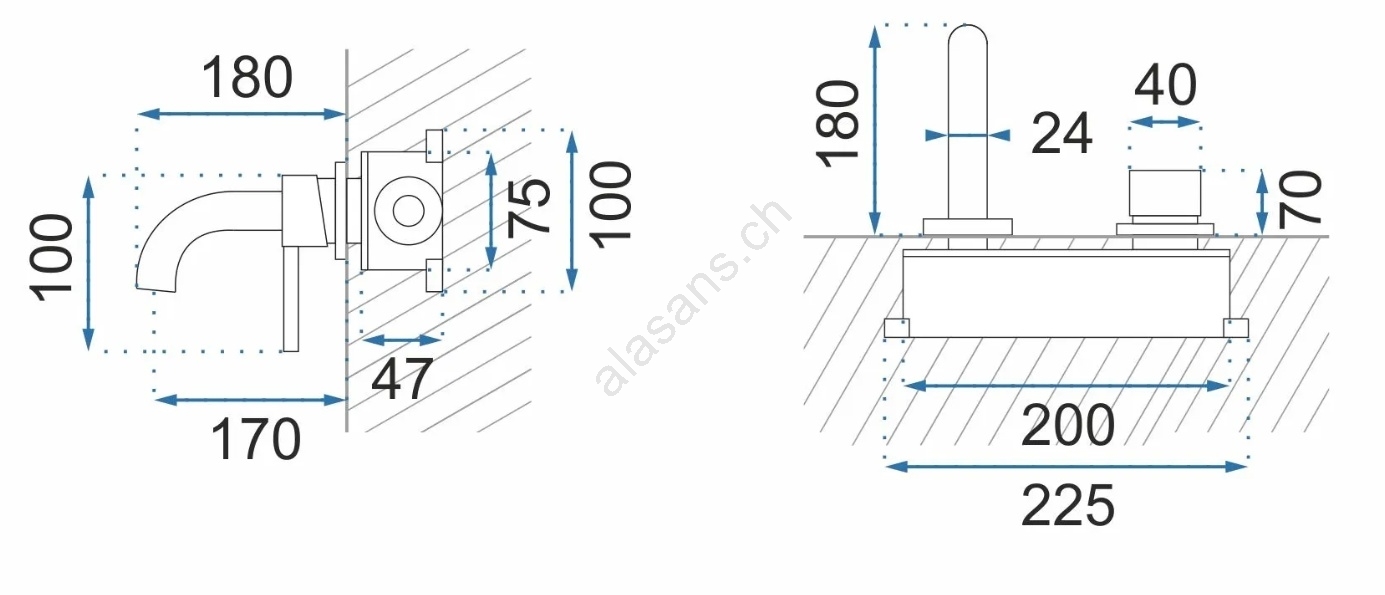 • Montage mural via le système BOX – module en plastique avec éléments intérieurs en laiton.