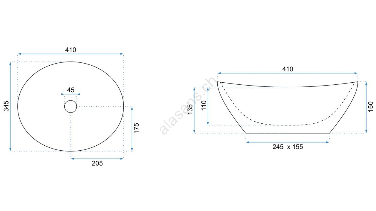 • REA-U0133 - Vasque à poser SOFIA 34,5x41 cm céramique/blanc brillant