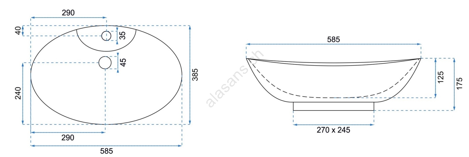 REA-U0160 - Vasque à poser ROSA 38,5x58,5 cm céramique/blanc brillant