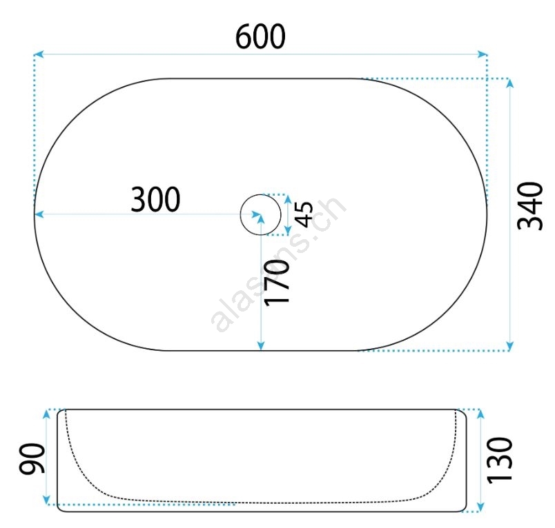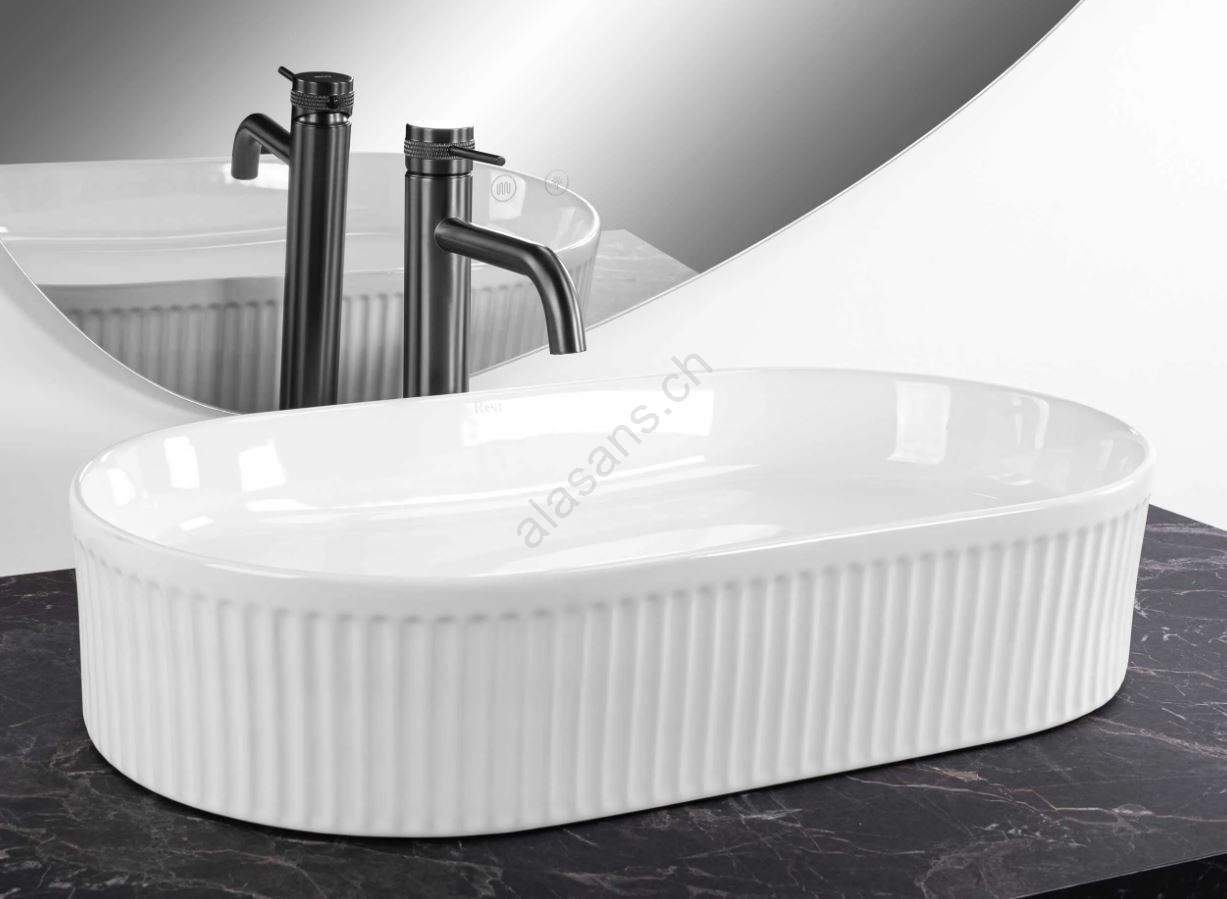 REA-U6526 - Vasque à poser VANDA 34 x 60 cm en céramique, finition blanc brillant