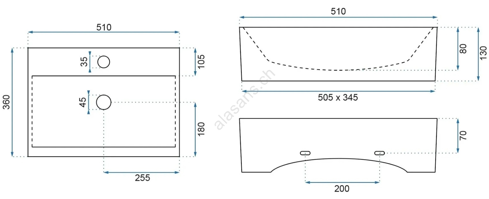 REA-U8701 - Vasque à poser BONITA 36x51 cm céramique/blanc brillant