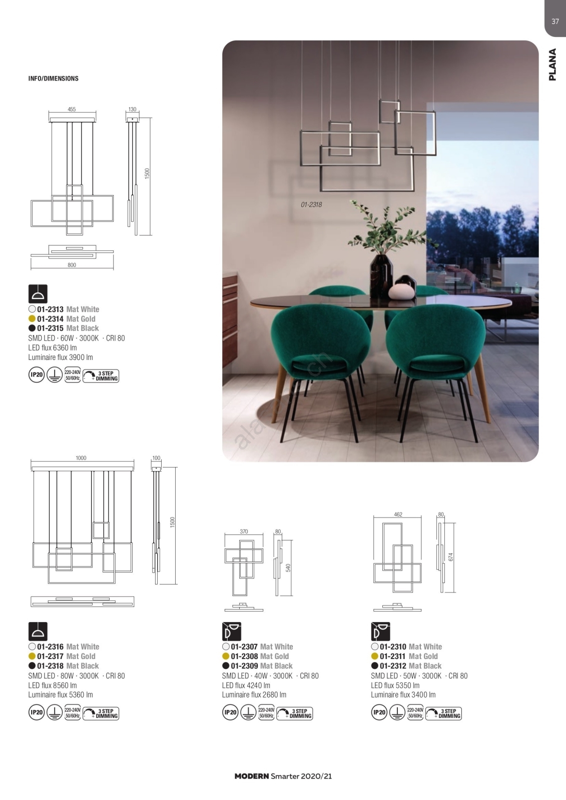 • Redo 01-2318 - Suspension filaire à intensité variable PLANA LED/80W/230V noir