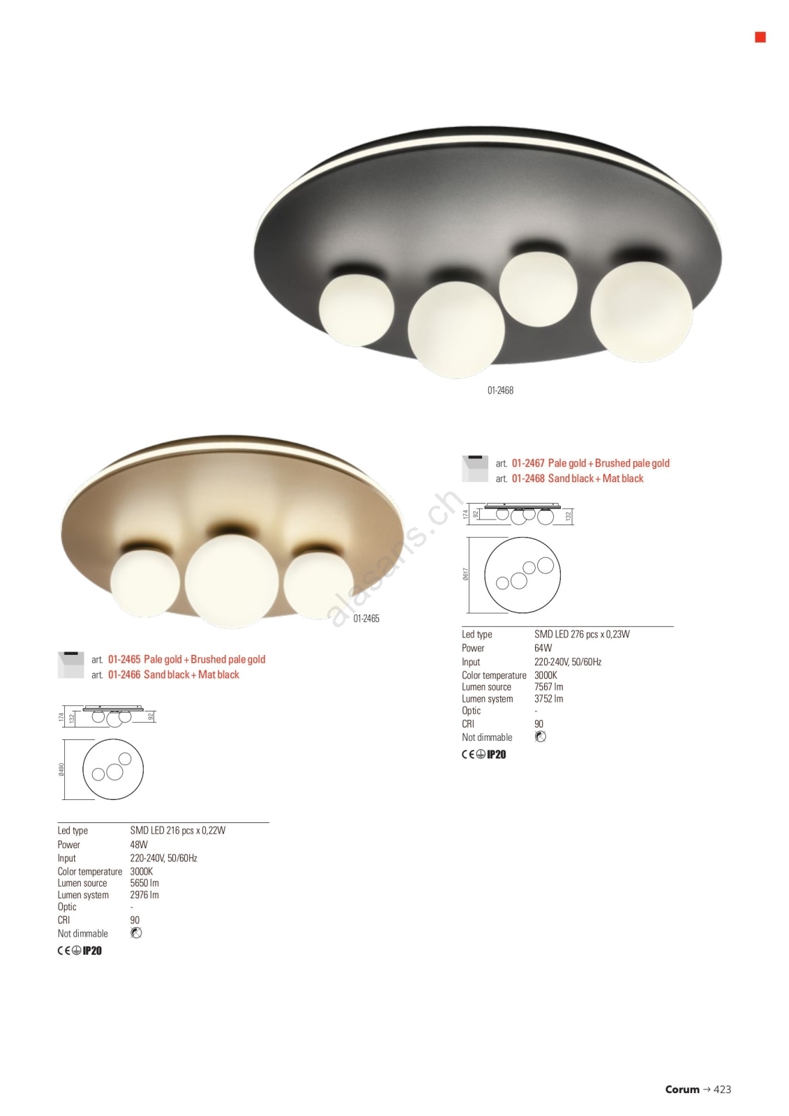 • Redo 01-2657 - Plafonnier LED CORUM, 48 W, 230 V, 3000 K, IRC 90, blanc