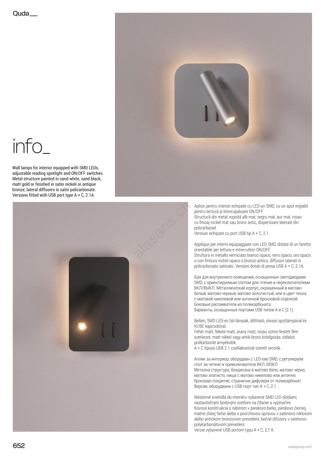 • Redo 01-4473 - Applique murale LED QUDA LED/6W/230V + LED/3W CRI 90 USB bronze
