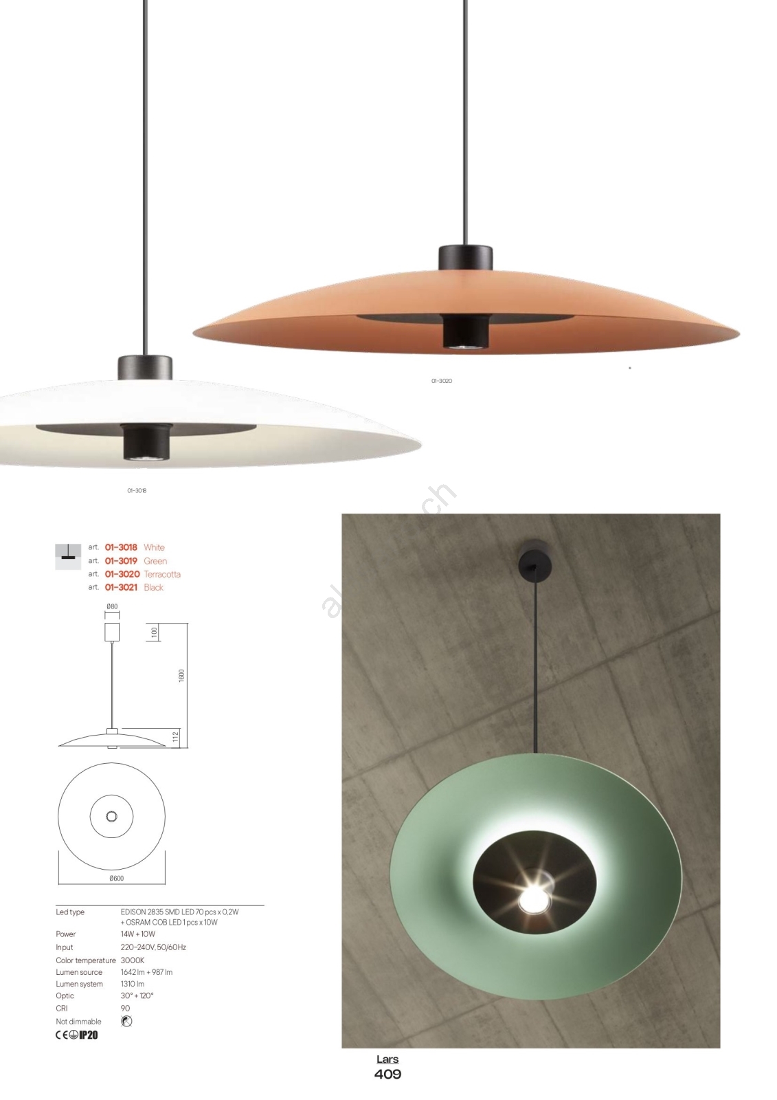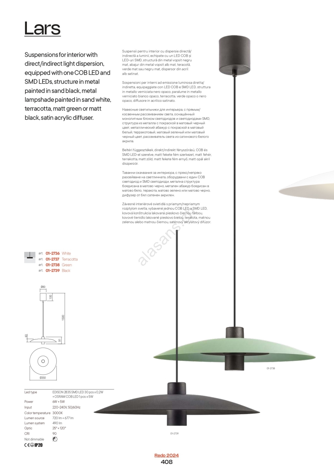 • Redo 01-3018 - Suspension LED sur câble LARS LED/14W/230V + LED/10W Ø 60 cm IRC 90 blanche
