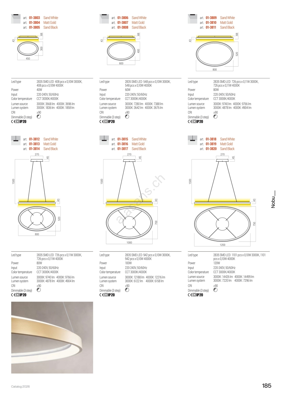 • Redo 01-3809 - Plafonnier LED dimmable NOBU, 80 W, 230 V, 3000/4000 K, IRC 90, blanc