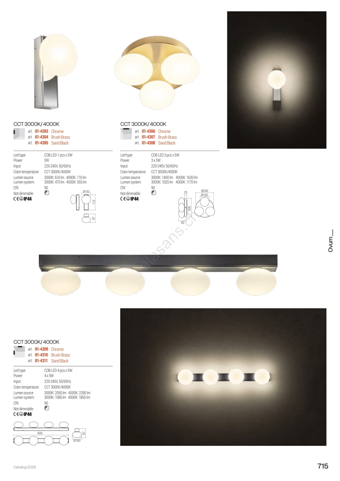 • Redo 01-4310 - Plafonnier LED pour salle de bains OVUM 4xLED/5W/230V 3000/4000K CRI 90 IP44 blanc/laiton